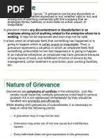 Nature of Grievance: Grievances are symptoms of conflicts in the enterprise. Just like smoke could mean