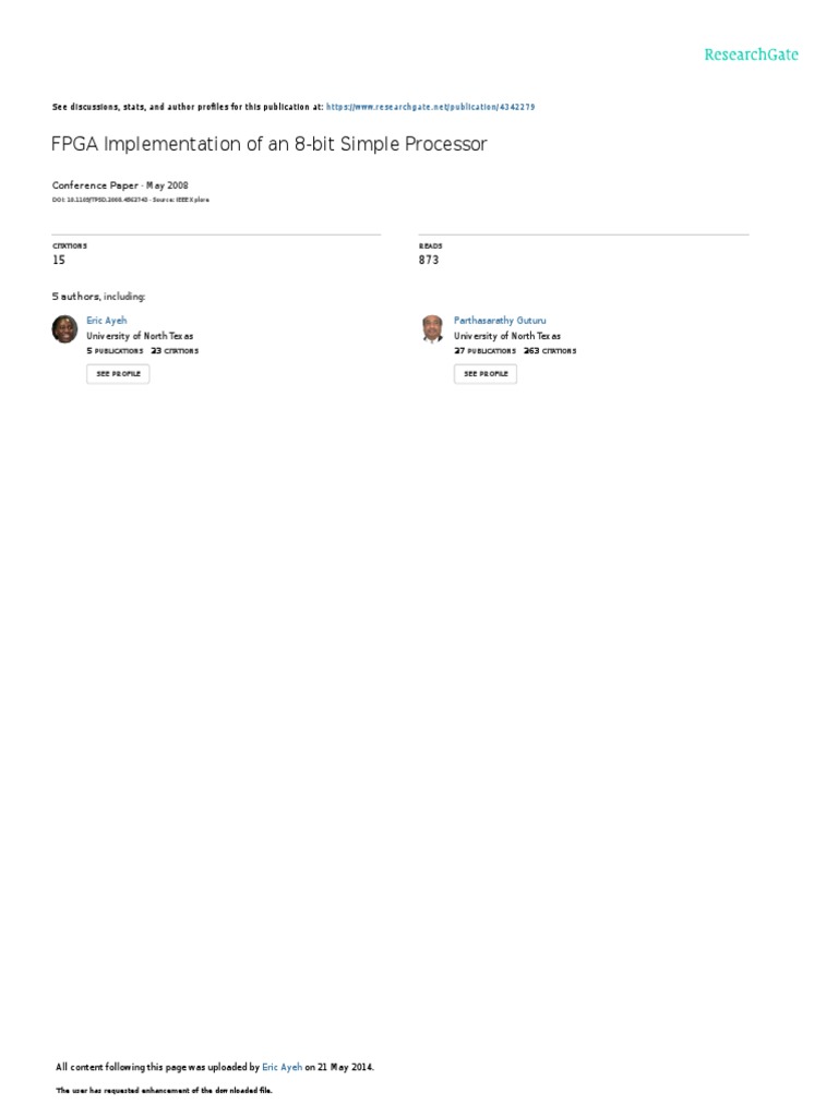 of an 8-bit FPGA based simple processor. Our system was based microprocessor flexible, programmable, and reliable. They