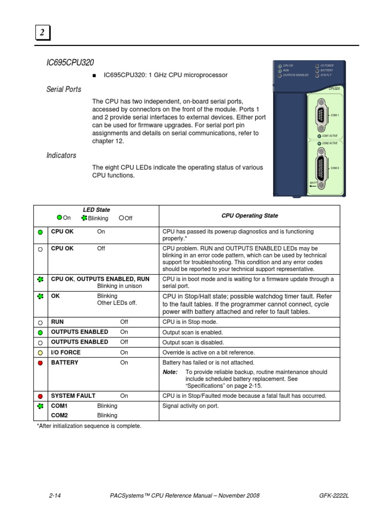 2-14 PACSystems™ CPU Reference Manual – November 2008 GFK-2222L