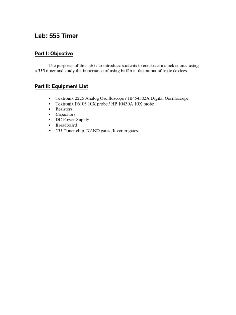 In this part of the lab, you will connect the 555 timer to generate an oscillator