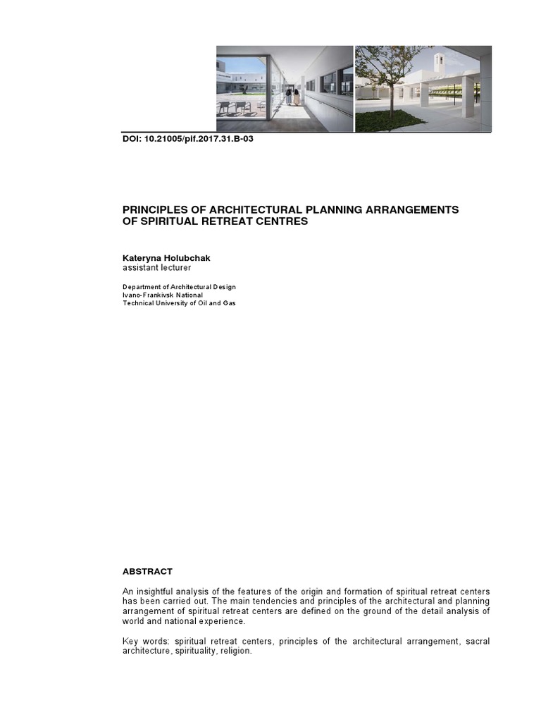 in-depth study of the principles of the internal arrangement of space of spiritual retreat cen-