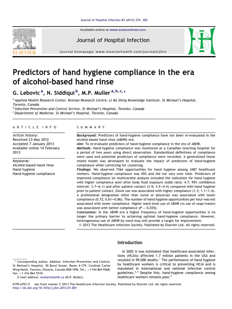 Accepted 7 January 2013 Aim: To re-evaluate predictors of hand-hygiene compliance in the era of ABHR.
