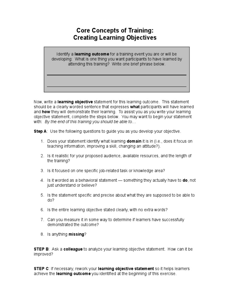 achieve the learning outcome you identified at the beginning of this exercise.