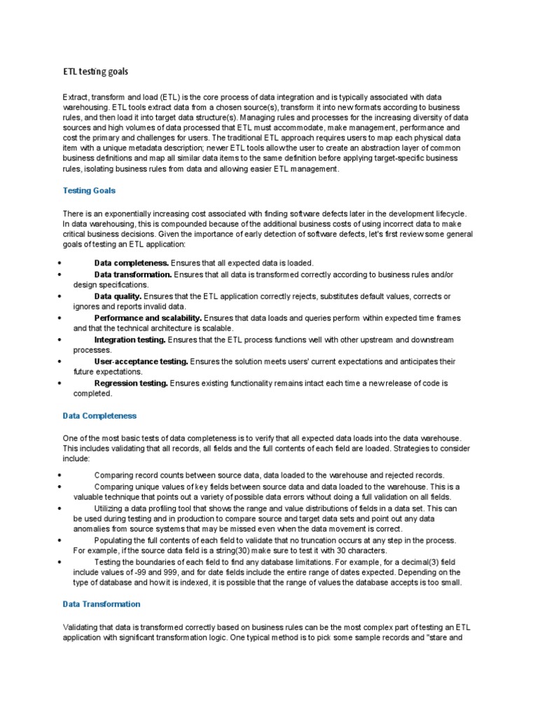 Validating that data is transformed correctly based on business rules can be the most complex part of testing an ETL