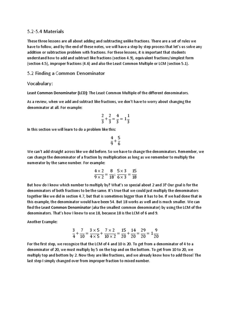 (section 4.5), improper fractions (4.6) and also the Least Common Multiple or LCM (section 5.1).
