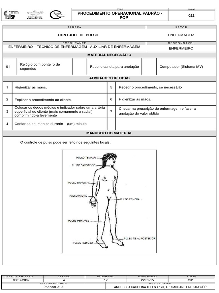 Colocar os dedos médios e indicador sobre uma artéria Checar na prescrição de enfermagem e fazer a
