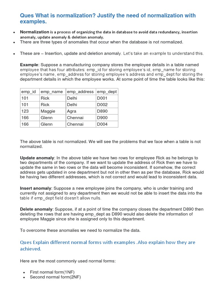 Ques Explain different normal forms with examples .Also explain how they are