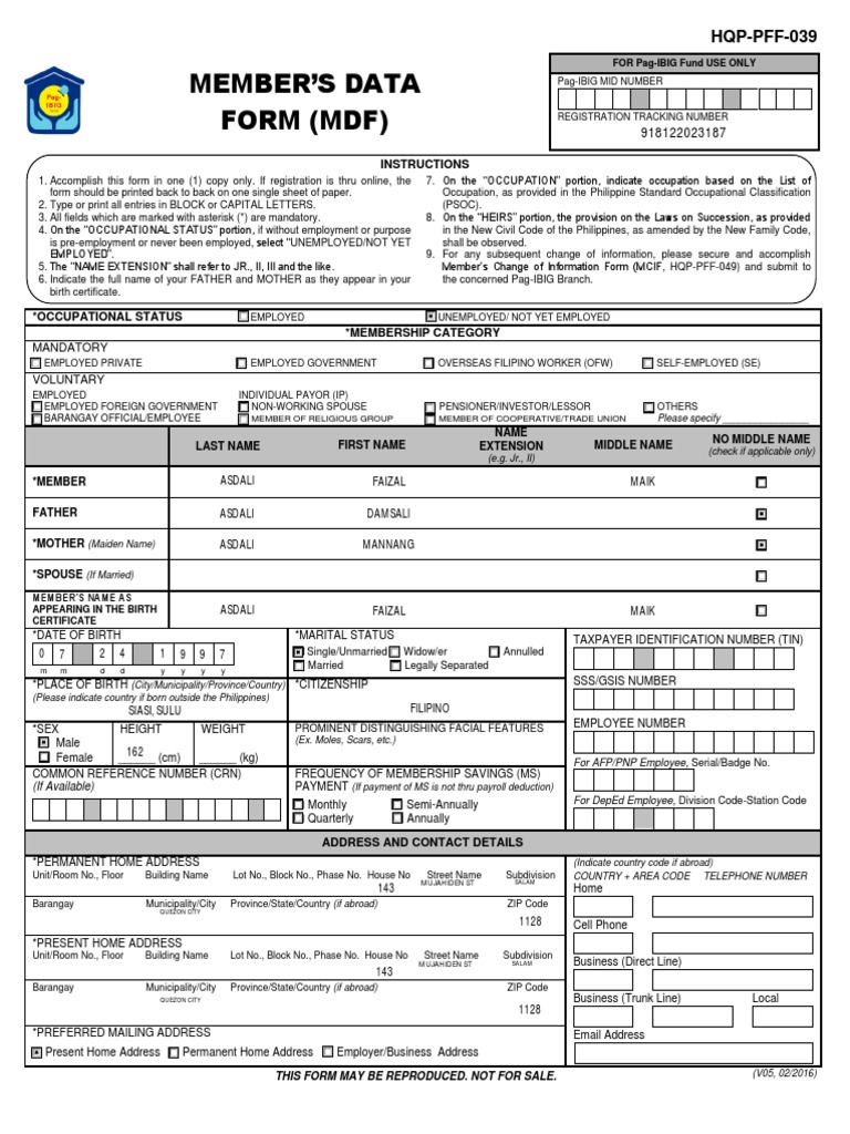 5. The “NAME EXTENSION” shall refer to JR., II, III and the like. Member’s Change of Information Form (MCIF, HQP-PFF-049) and submit to
