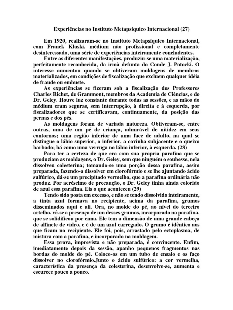 Experiências no Instituto Metapsíquico Internacional (27)
