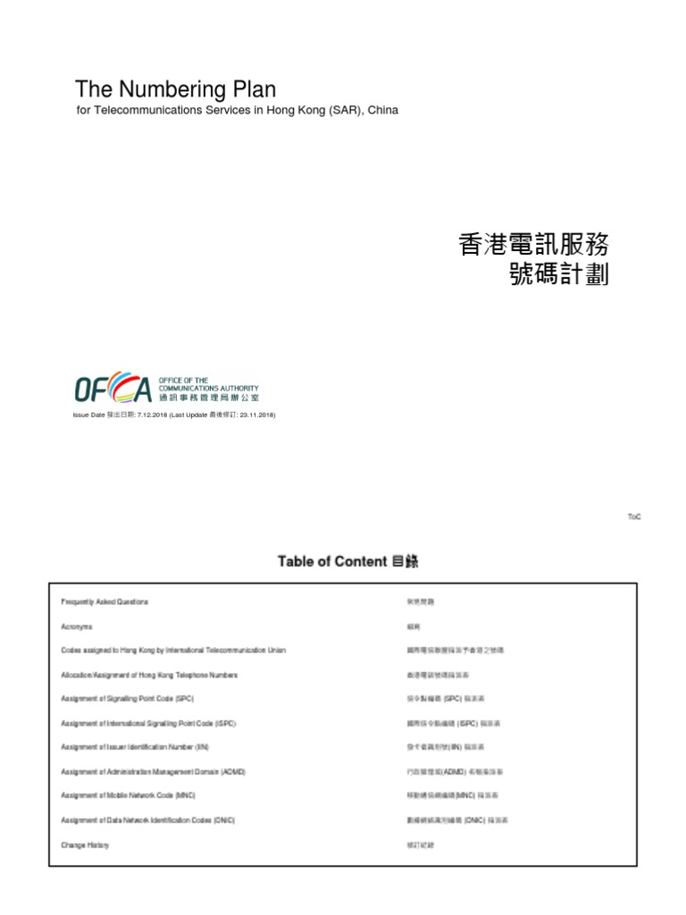 CoP 《關於使用香港號碼計劃的號碼和編碼的業務守則》 文件。