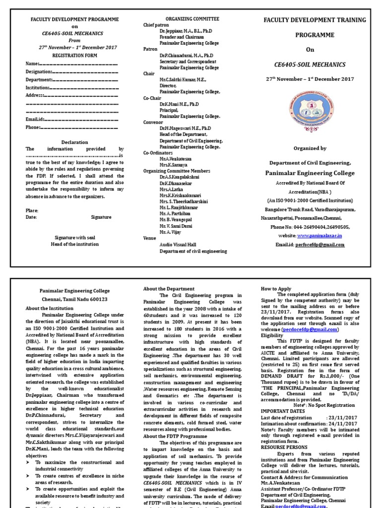 (NBA). It is located near poonamallee, infrastructure with high standards of This FDTP is designed for faculty