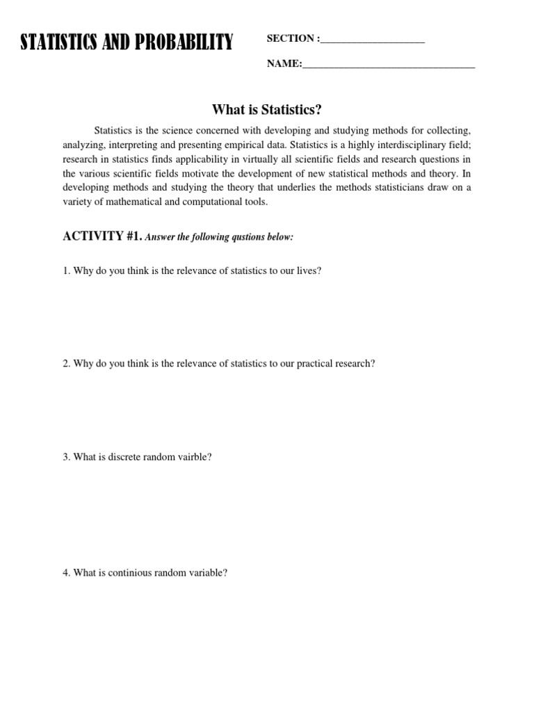 STATISTICS AND PROBABILITY SECTION :____________________