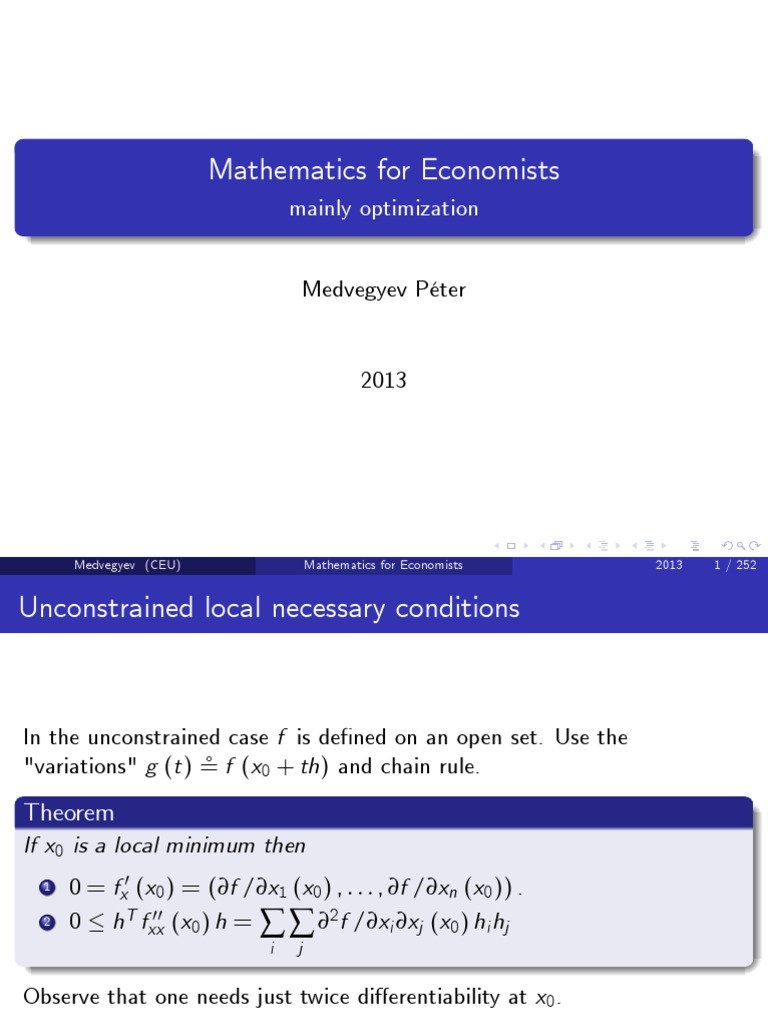 Medvegyev (CEU) Mathematics for Economists 2013 250 / 252
