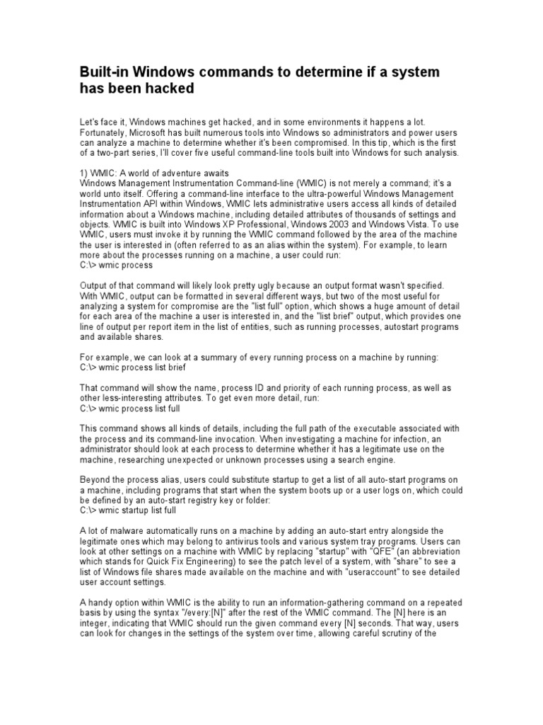 can analyze a machine to determine whether it's been compromised. In this tip, which is the first