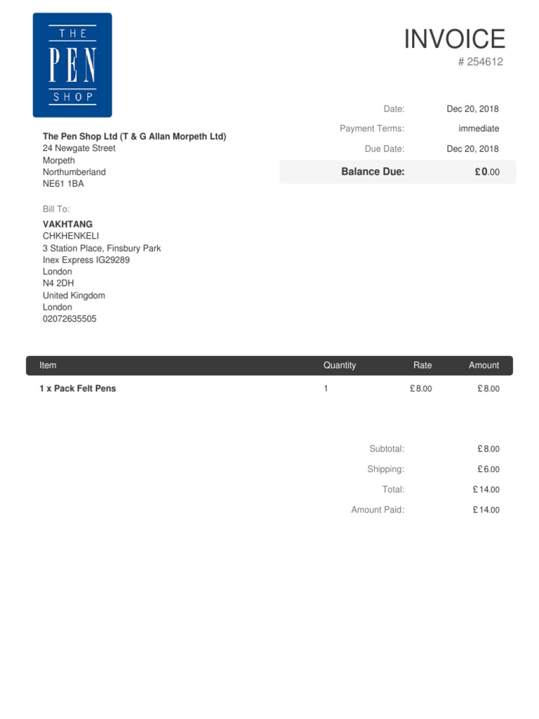 Amount Paid: £ 14.00