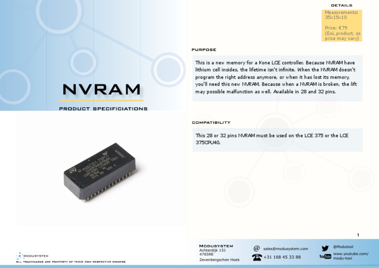 This is a new memory for a Kone LCE controller. Because NVRAM have