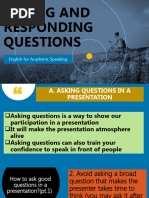 This document is a form for students to fill out after presentations to write one thing they learned and one question they have from each presenter. It includes spaces for the presenter's name, what was learned, and one question.