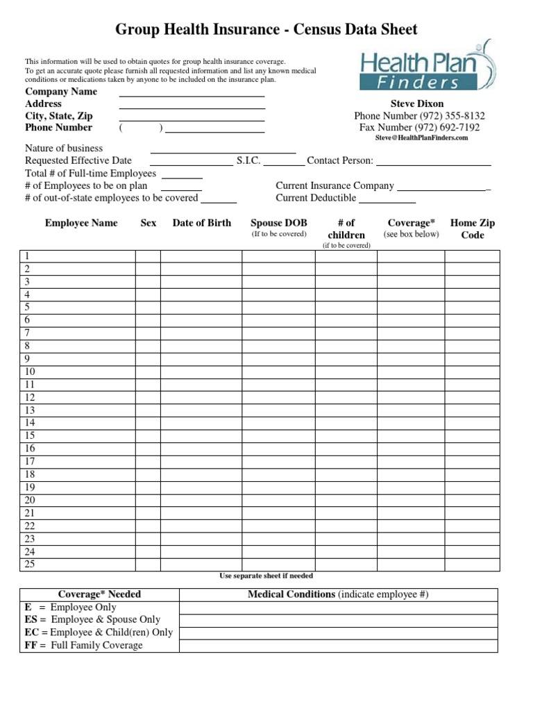 Group Health Insurance - Census Data Sheet