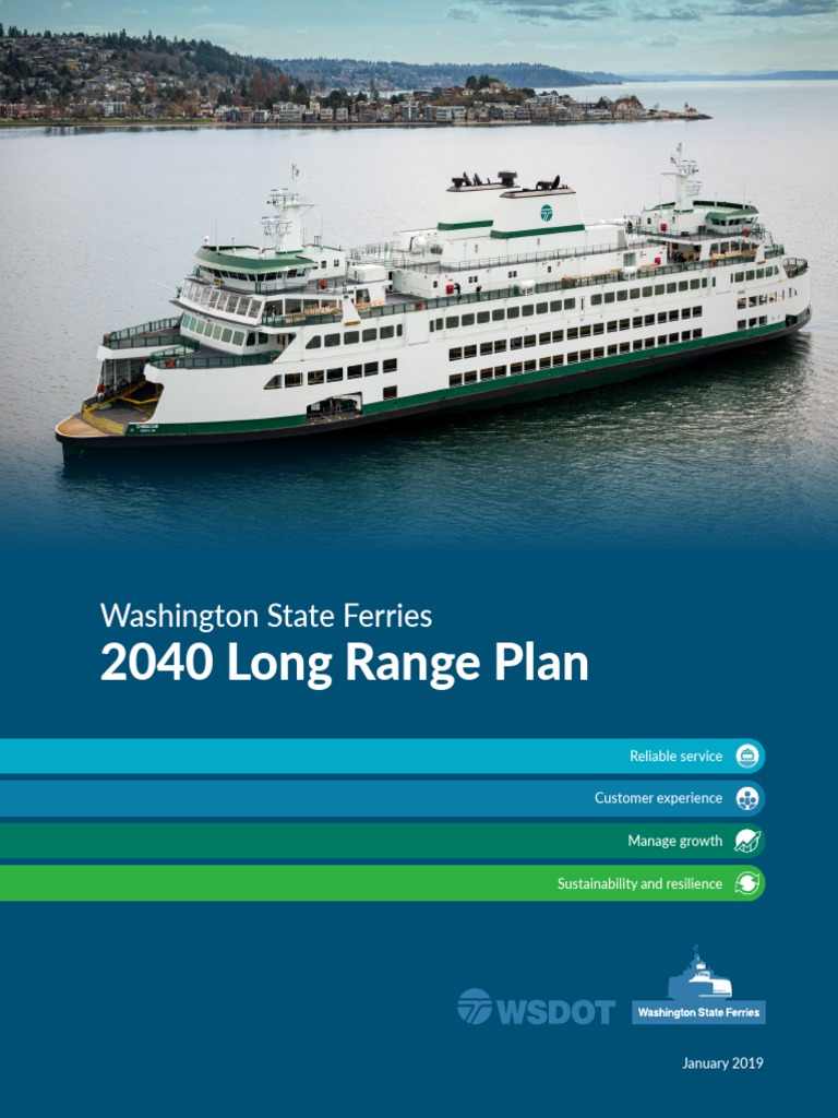 es for bolstering its workforce at a time when the agency faces unprecedented retirement rates of highly skilled employees. The Plan is organized around four themes that emerged from the community engagement process: reliable service, the customer experience, managing growth, and sustainability and resilience. While a sizable focus of the Plan is centered on stabilizing an aging ferry fleet and needed investments in new, greener vessels through electrification, it also suggests several ways to modernize and enhance the customer experience through technology, transportation demand management solutions, and increased multimodal connections. WSF is committed to using the plan as a roadmap for the future and will be continually reviewing its progress and evaluating its goals and objectives. I look forward to your feedback on the Plan