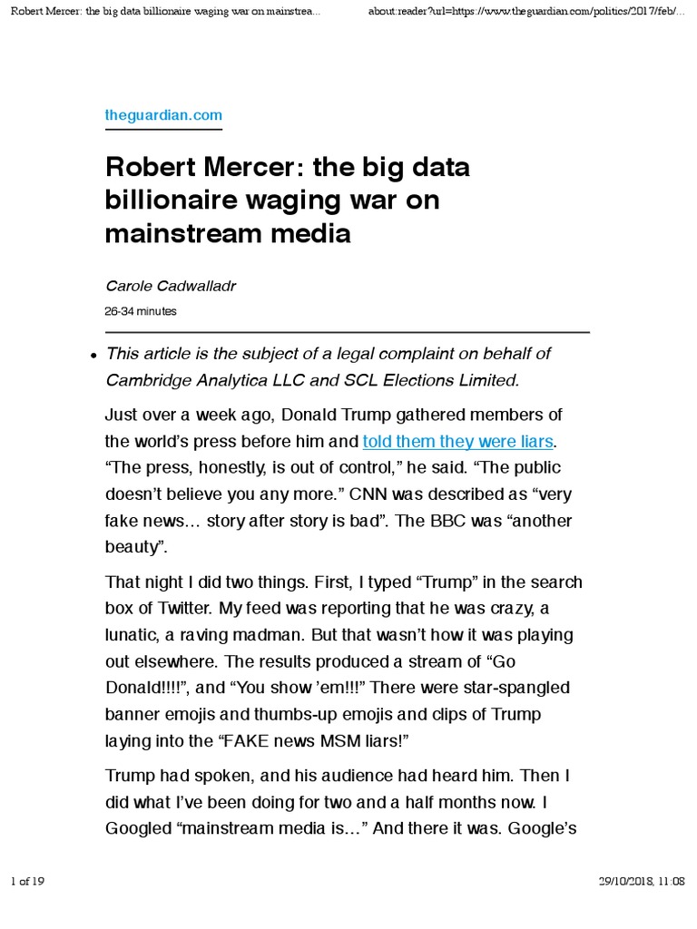 Robert Mercer: the big data billionaire waging war on mainstrea... about:reader?url=[Link]