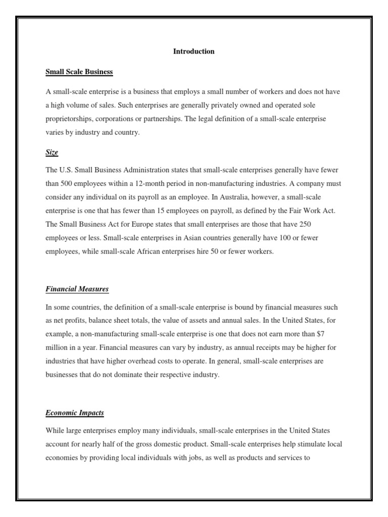 A small-scale enterprise is a business that employs a small number of workers and does not have