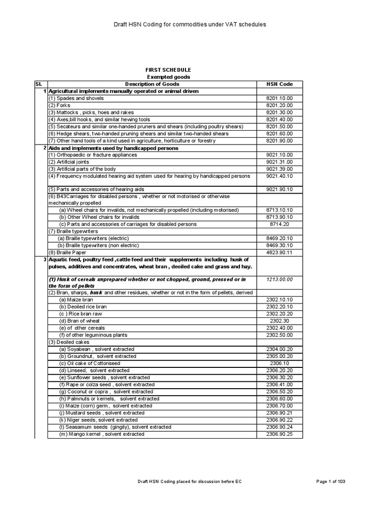 Draft HSN Coding placed for discussion before EC Page 103 of 103