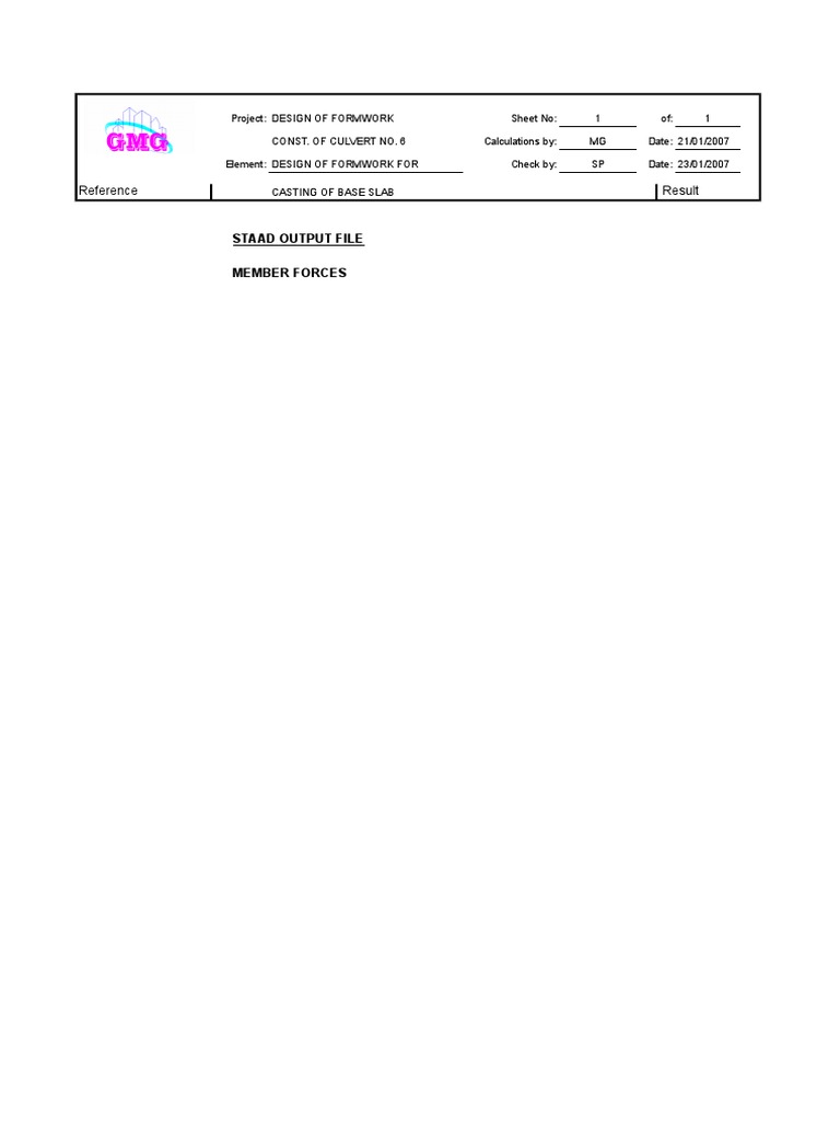 GMG International Design Engineering Solutiosns: PC06A-1 Calculation Sheet; 01/05/2019