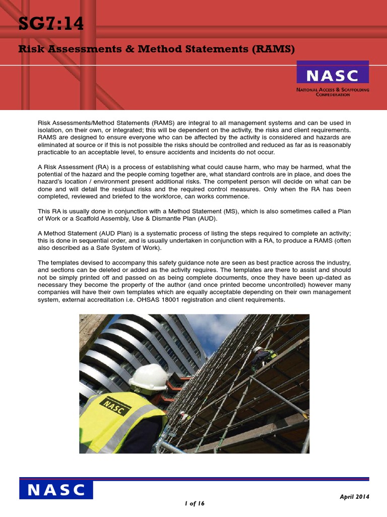 A pro-forma Risk Assessment is available in electronic format from the memberʼs area at www.nasc.org.uk