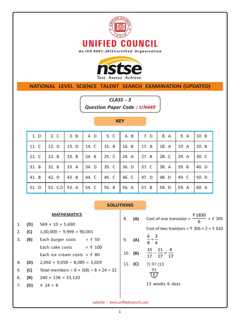 NATIONAL LEVEL SCIENCE TALENT SEARCH EXAMINATION (UPDATED)