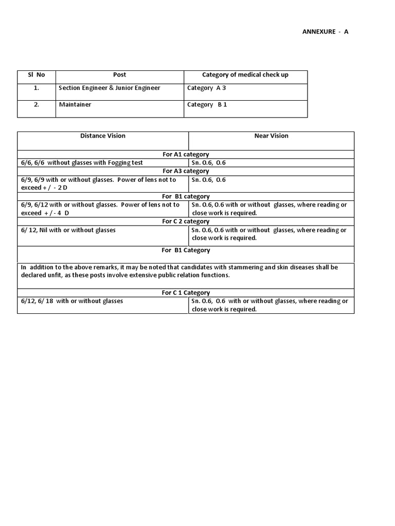 Sl No Post Category of medical check up