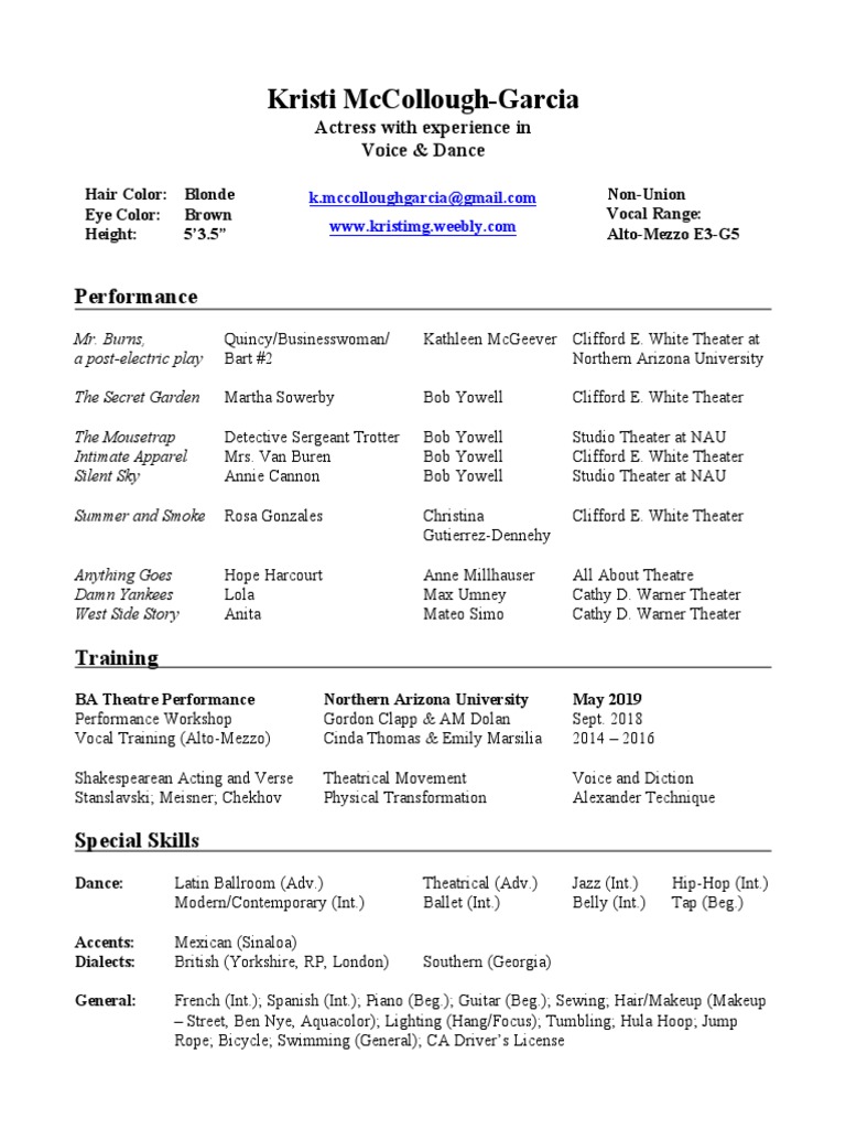 Hair Color: Blonde k.mccolloughgarcia@gmail.com Non-Union