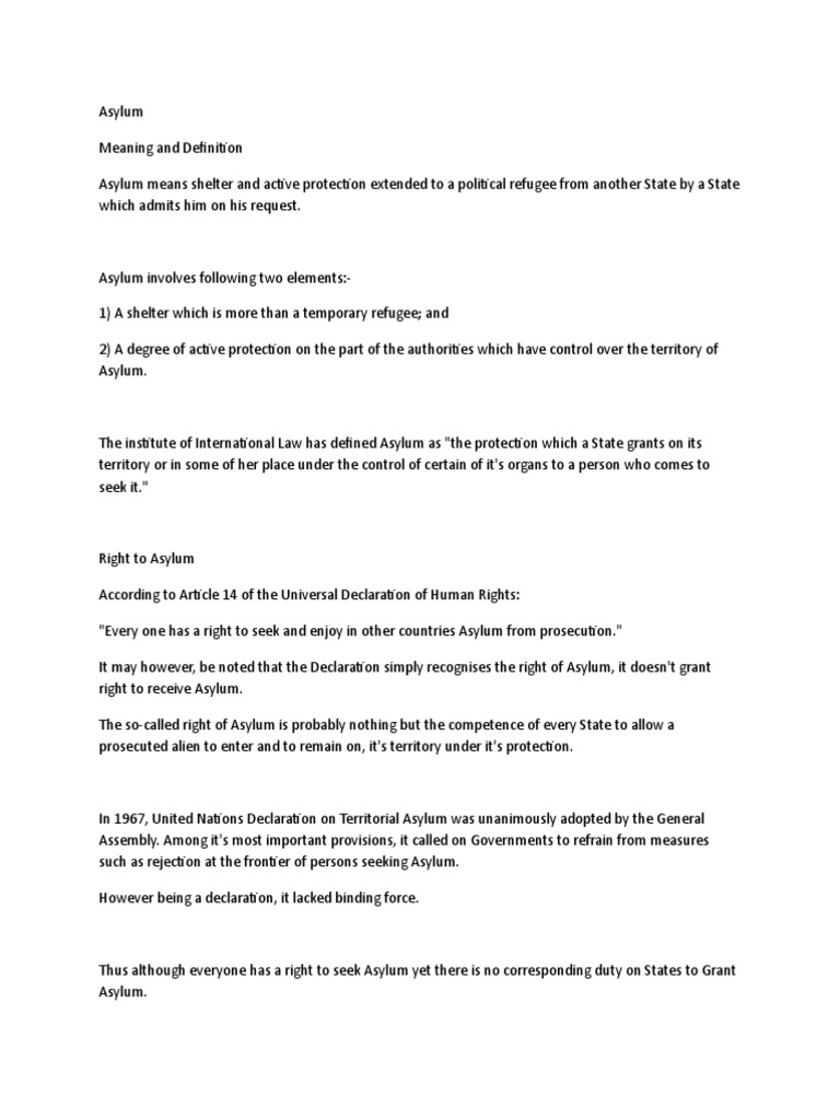 Also Article 1 of the Draft Declaration of Asylum as adopted by the United Nations Human Rights