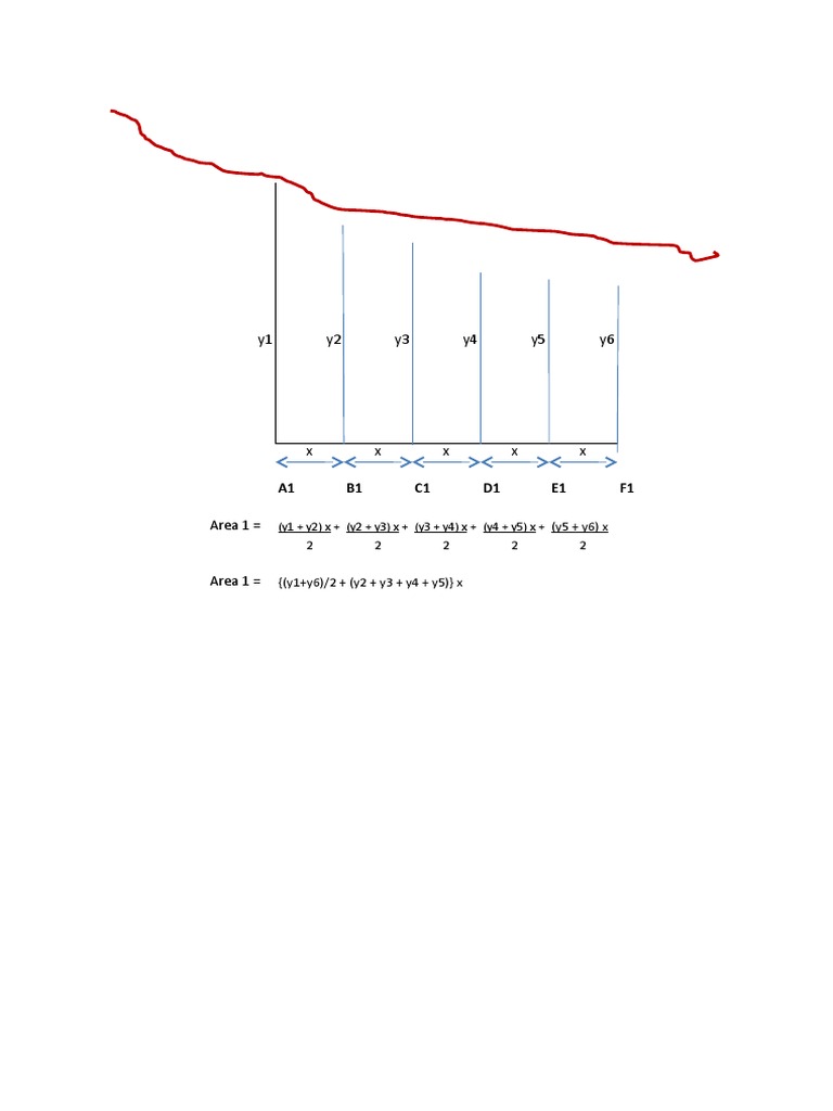 Area 1 = (y1 + y2) x + (y2 + y3) x + (y3 + y4) x + (y4 + y5) x + (y5 + y6) x