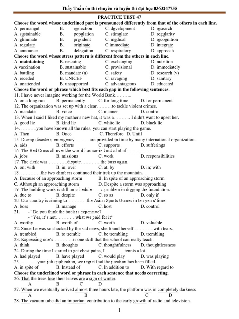 Thầy Tuấn ôn thi chuyên và luyện thi đại học 0363247755