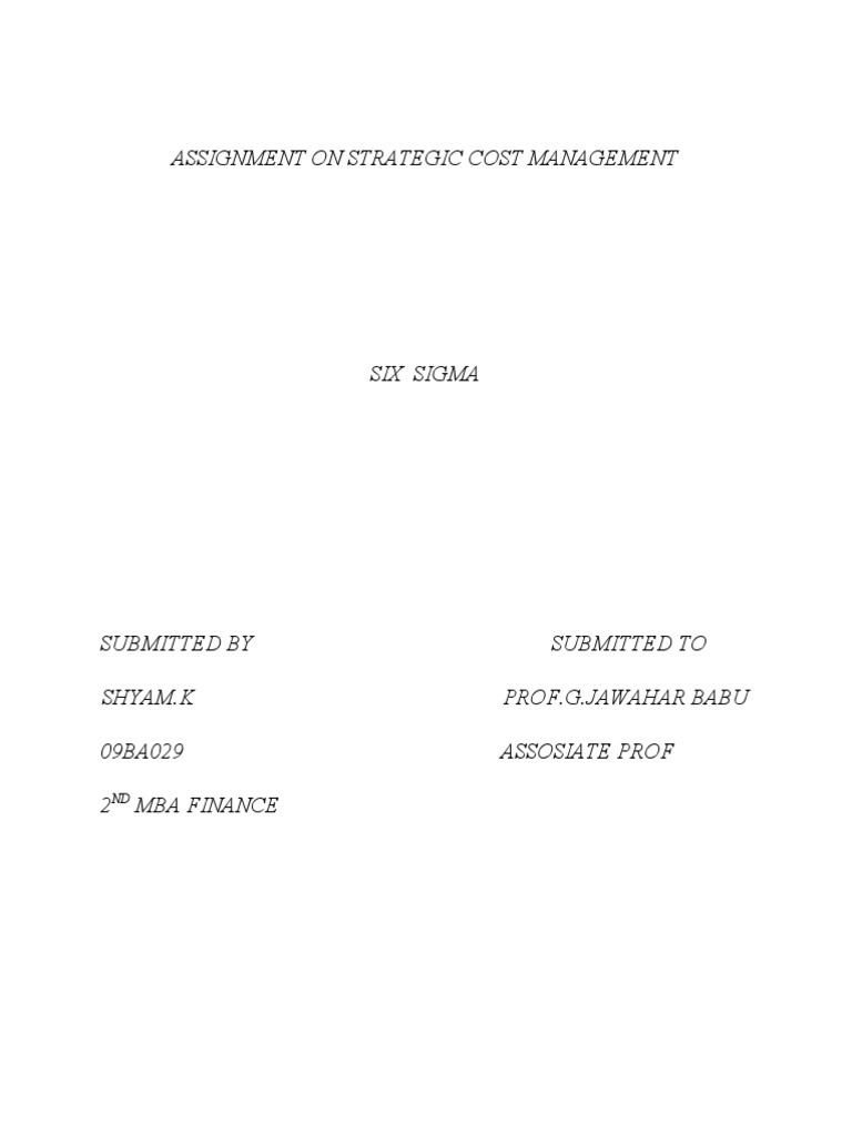 ASSIGNMENT ON STRATEGIC COST MANAGEMENT