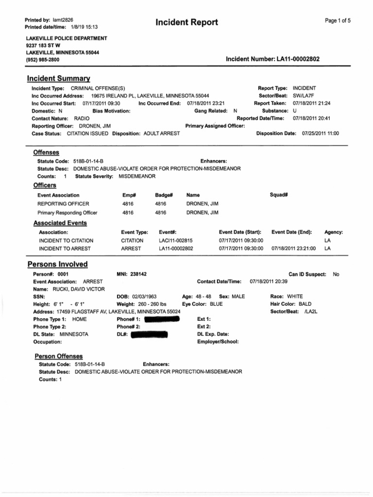 Printed dateltime: 1/8/19 15:13 Incident Report i