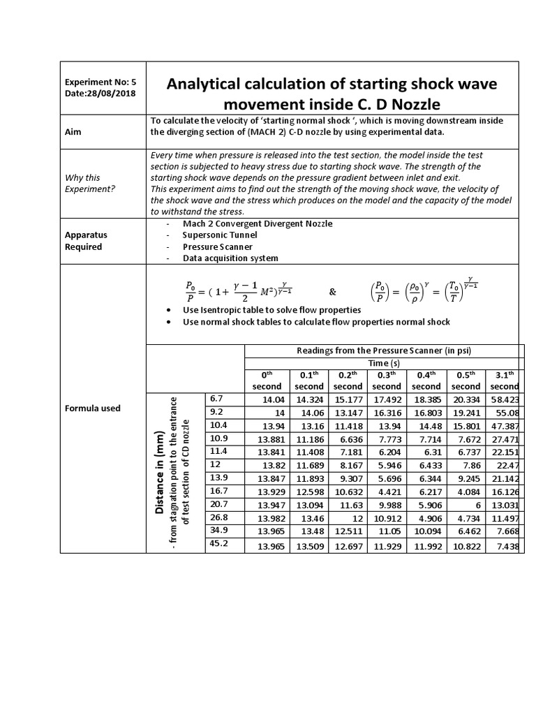 o From the above data, we can easily calculate the speed of the normal shock. Which