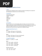 The first experiment (three equal forces), was in equilibrium. When the calculations were completed