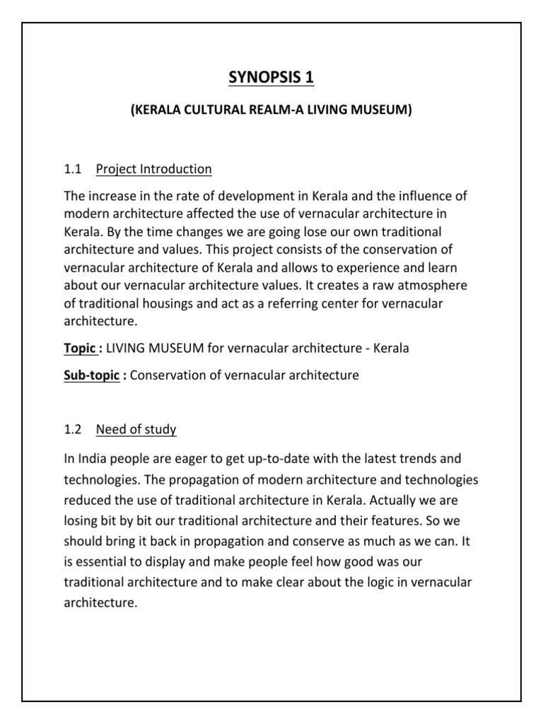 Topic : LIVING MUSEUM for vernacular architecture - Kerala