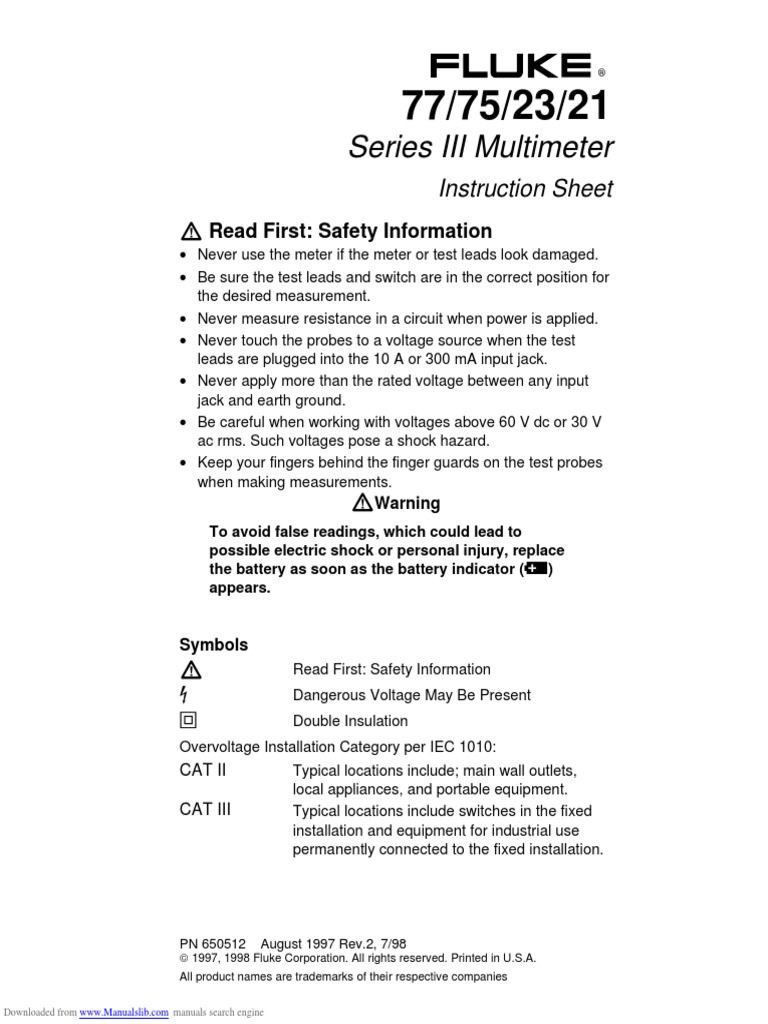 1997, 1998 Fluke Corporation. All rights reserved. Printed in U.S.A.