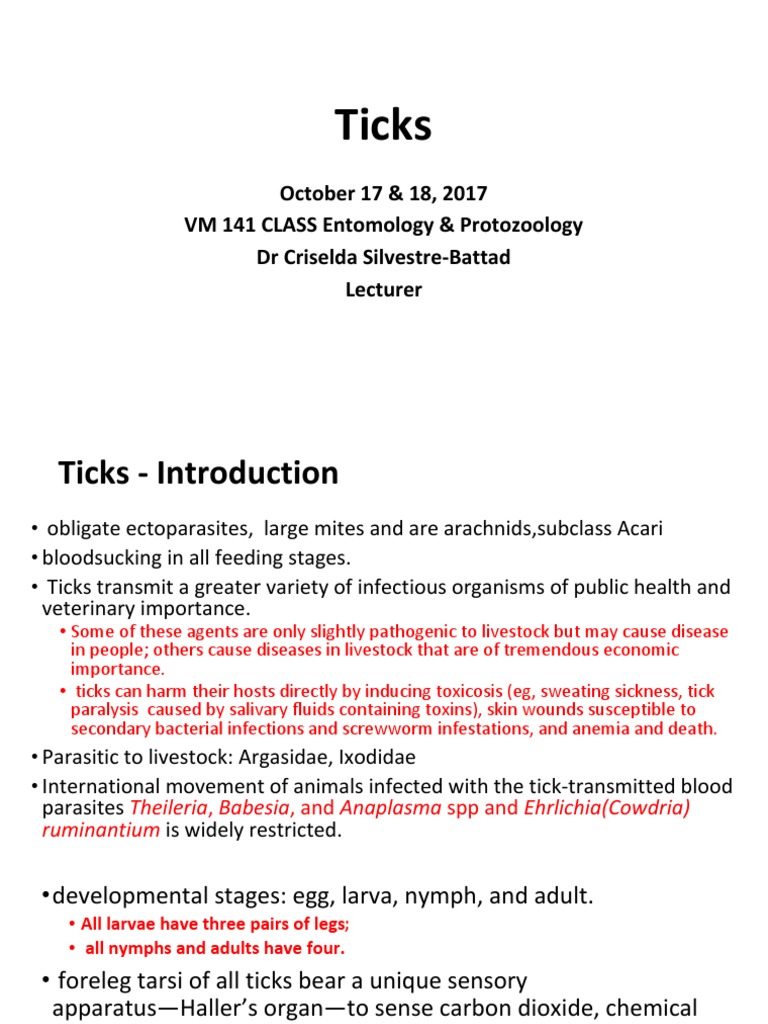• A persicus (the fowl or poultry tick) - important poultry pest ww in warm climates.
