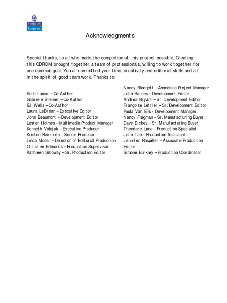 John Beaumont – Development Editor Nancy Flagman – Sr. Manufacturing Buyer