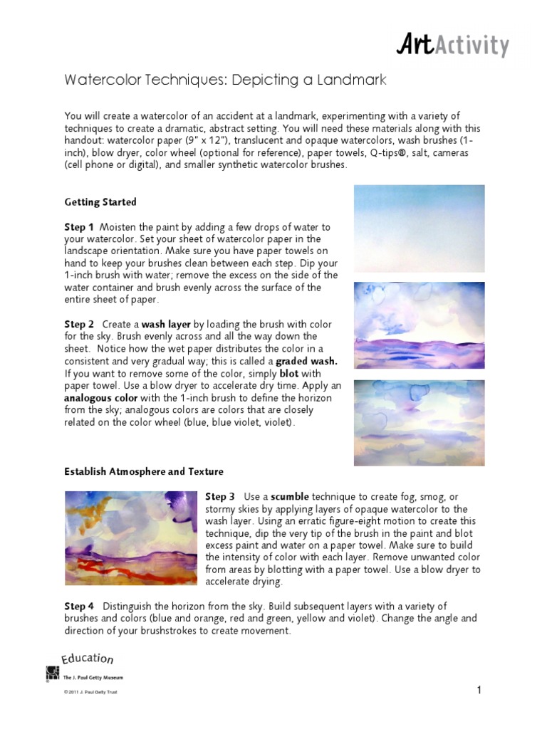 You will create a watercolor of an accident at a landmark, experimenting with a variety of