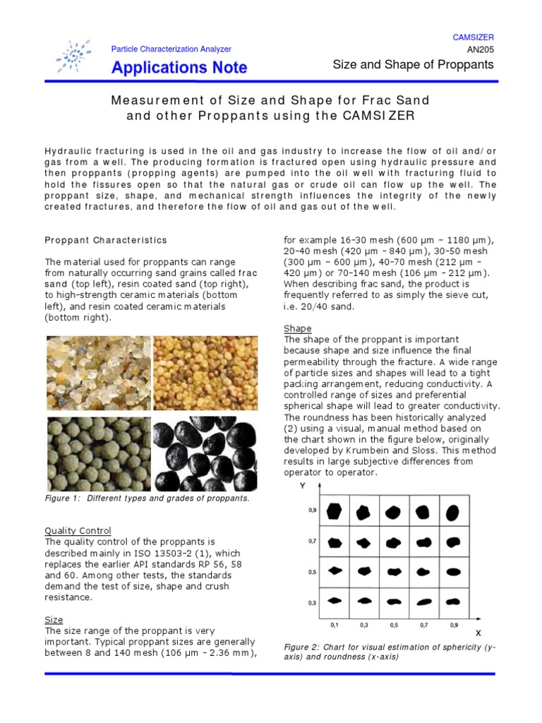 Proppant Characteristics for example 16-30 mesh (600 µm – 1180 µm),
