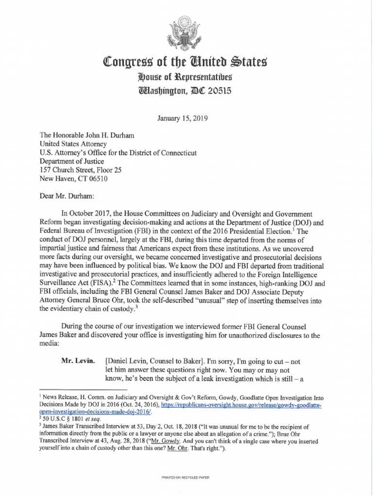 Letter from Mark Meadows and Jim Jordan on James Baker.