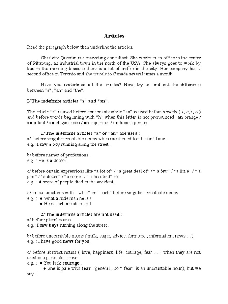Read the paragraph below then underline the articles.