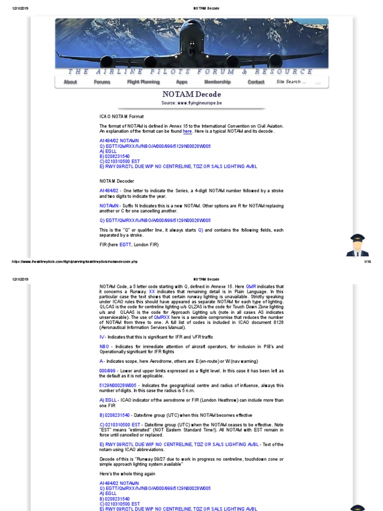 https://www.theairlinepilots.com/flightplanningforairlinepilots/notamdecode.php 1/16
