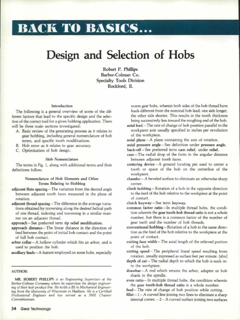 DESIGN AND SELECTION OF HOBS ... The intent of this section is to suggest the importance of