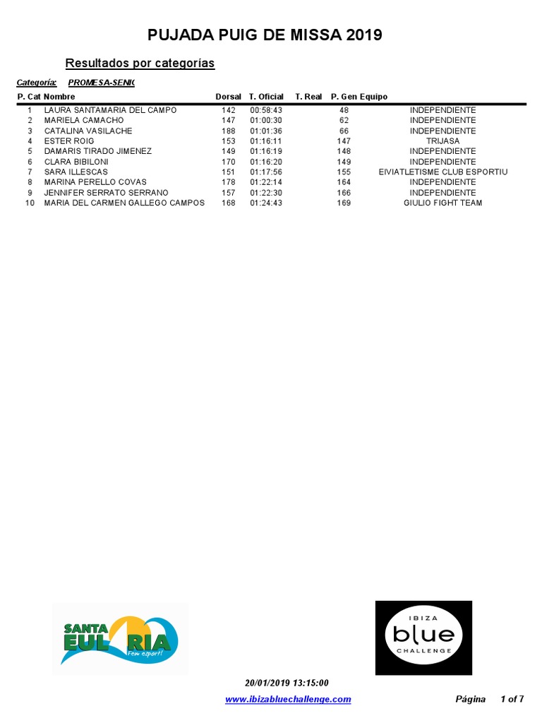 5 EVARISTO RIBAS BOIX 113 00:52:54 20 INDEPENDIENTE
