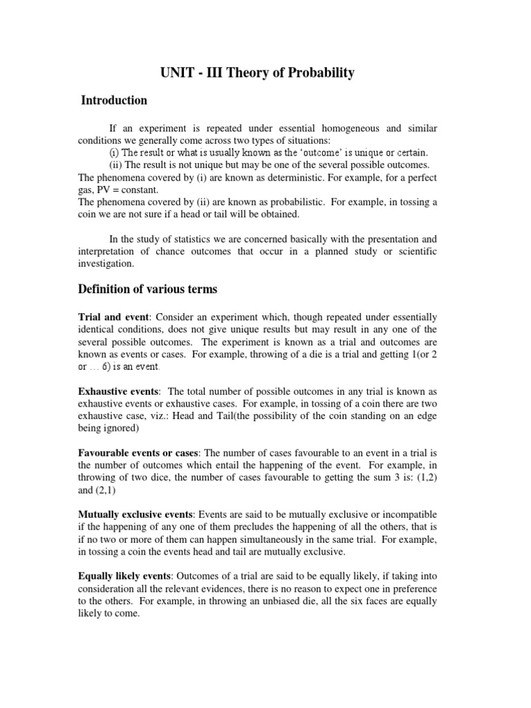 Unit - I Theory of Probability